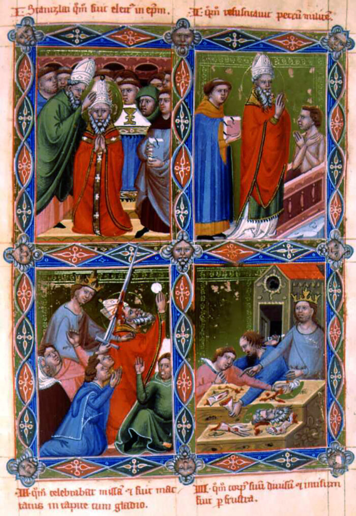 Relacja Galla Anonima piszącego swą Kronikę trzydzieści kilka lat później pozostaje do dziś jedynym ówczesnym źródłem pisanym. Według niej, w wyniku konfliktu z Bolesławem Szczodrym, Stanisław został skazany na obcięcie członków: za bunt [Bolesław] skazał biskupa na obcięcie członków. Ani więc biskupa-buntownika nie uniewinniamy, ani króla mszczącego się tak szpetnie nie zalecamy. Najprawdopodobniej sam kronikarz dobrze znał tło konfliktu, lecz w swoim dziele nie rozwinął owego wątku. Przypuszcza się, że nie mógł tego zrobić ze względu na panowanie w owym czasie Bolesława III Krzywoustego, syna księcia Władysława Hermana, który był członkiem opozycji względem króla. Według późniejszych przekazów bezpośrednim powodem konfliktu pomiędzy biskupem a królem było to, że Stanisław bezskutecznie upominał Bolesława za niewłaściwe postępowanie wobec poddanych oraz za powodowanie publicznego zgorszenia. Wedle przekazu kroniki Wincentego Kadłubka Stanisław najpierw groził mu [Bolesławowi] zagładą królestwa, wreszcie wyciągnął ku niemu miecz klątwy. Nie jest jasne, czy należy przez to rozumieć grożenie ekskomuniką czy jej rzucenie; przyjmuje się jednak raczej to pierwsze. Według Jana Długosza Stanisław nie stawił się po wezwaniu przed sąd królewski, gdyż nie pozwalało mu na to prawo kanoniczne, więc został przez króla bezprawnie skazany na śmierć. Według wersji alternatywnej, pozostawionej przez Wincentego Kadłubka, biskup Stanisław stanął w obronie niewiernych żon rycerzy, walczących na wyprawie kijowskiej, które król rozkazał okrutnie ukarać, choć ich mężowie im przebaczyli. Król rozkazał swoim sługom zabicie biskupa w kościele na Skałce w czasie odprawiania przez niego mszy świętej, a gdy ci nie chcieli, sam własnoręcznie zamordował świętego. Wersja ta jednak ze względu na moralizatorski charakter kroniki Kadłubka, a także na fakt, że również był biskupem i napisał swoją kronikę w czasie panowania potomków Władysława Hermana, jest mało wiarygodna.